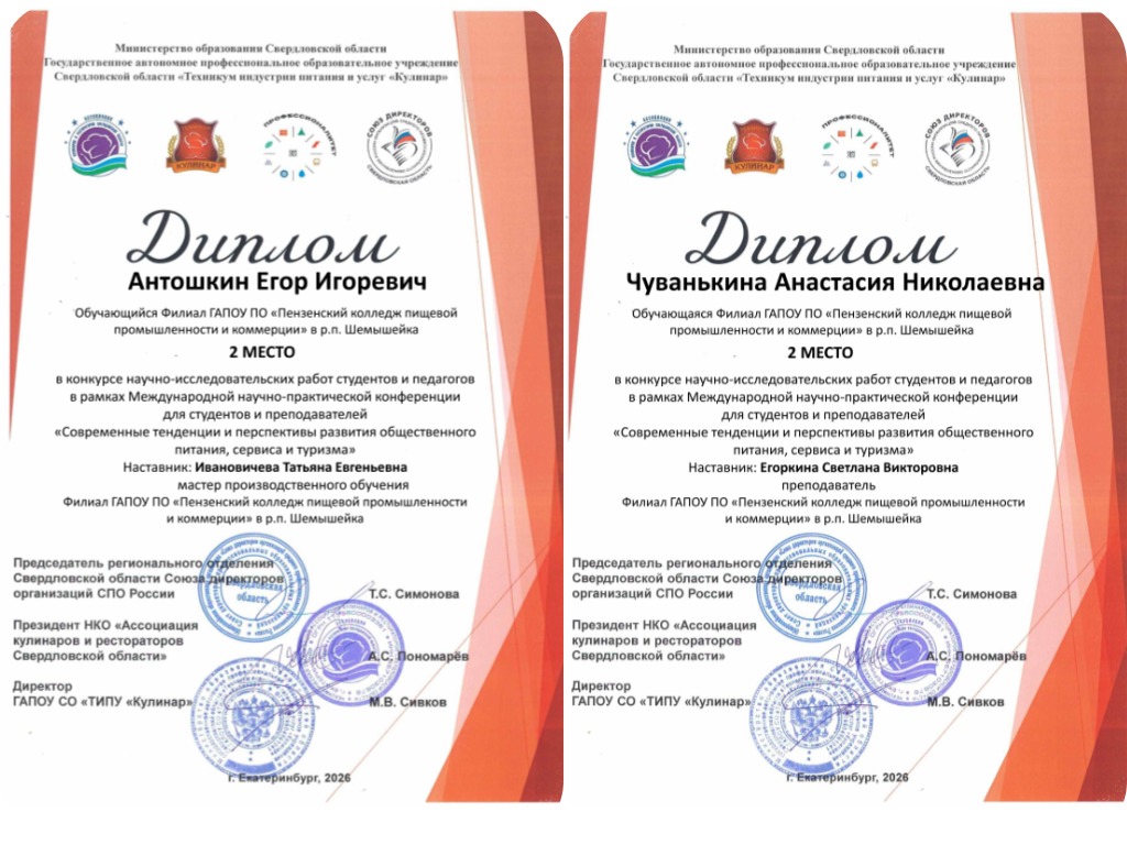 27 марта на базе ГАПОУ СО «Техникум индустрии питания и услуг „Кулинар"» (г. Екатеринбург) состоялась международная научно-практическая конференция для студентов и преподавателей «Современные тенденции и перспективы развития общественного питания, сервиса и туризма».